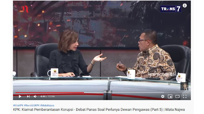Dalam program tersebut hadir pula Wakil Ketua Komisi Pemberantasan Korupsi (KPK) Laode M Syarif, dan Pakar Hukum Tata Negara UGM, Zainal Arifin Mochtar.