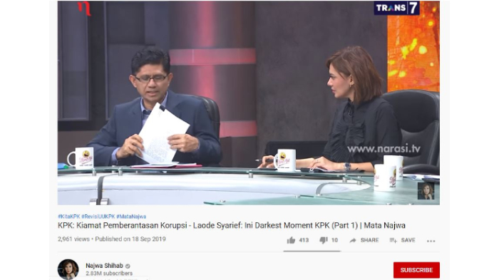 • Najwa Shihab Penasaran Bagaimana Kebatinan KPK Hadapi Revisi UU, Laode: Itu Kayak Roller Coaster