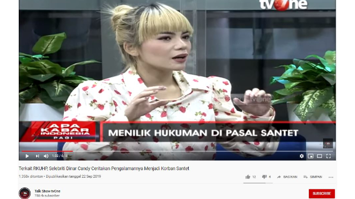 Dilansir oleh TribunWow.com, hal itu disampaikan Dinar Candy terkait pasal Revisi Kitab Undang-undang Hukum Pidana.
