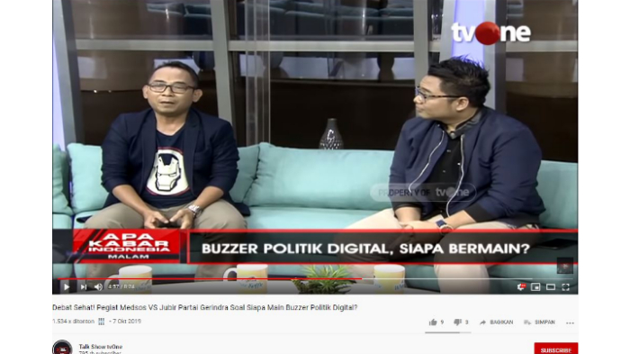 "Tadi Mas Eko berkata bahwa ketika ini banyak dianggap sebagai buzzer, orang kemudian banyak sekali ide-idenya jadi dibungkam, karena begitu ngomong memberikan opini, kemudian langsung mendapatkan resistensi dari pembaca atau netizen lainnya," ujar sang pembawa acara.