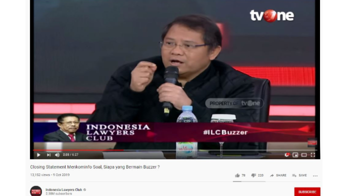 Saat itu ILC mengambil tajuk acara berjudul "Siapa yang Bermain Buzzer?".