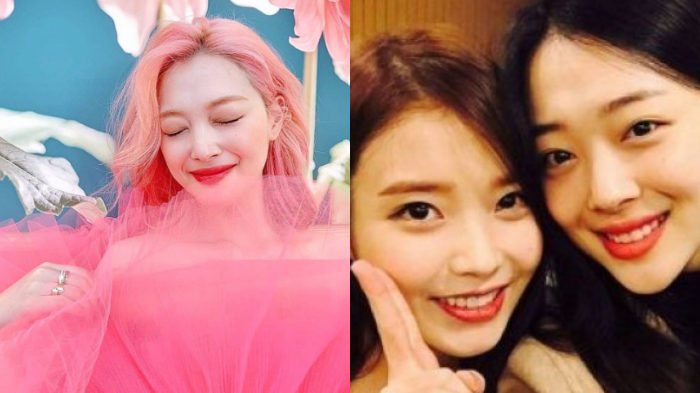 Sulli dan IU memang diketahui bersahabat, bahkan baru-baru ini Sulli muncul sebagai cameo di drama IU berjudul 'Hotel del Luna'.