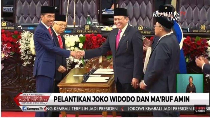 Dilansir TribunWow.com dari siaran langsung kanal YouTube KOMPASTV, Jokowi dan Ma'ruf Amin mengucapkan sumpah sebagai presiden dan wakil presiden sekitar pukul 16.00 WIB.