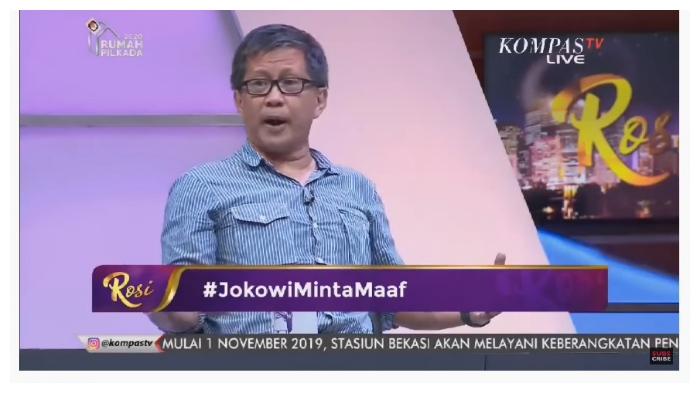 Dilansir TribunWow.com dari channel YouTube KOMPASTV, Kamis (31/10/2019), Rocky Gerung mengimbau Presiden Joko Widodo (Jokowi) untuk meminta maaf pada Tetty Paruntu.