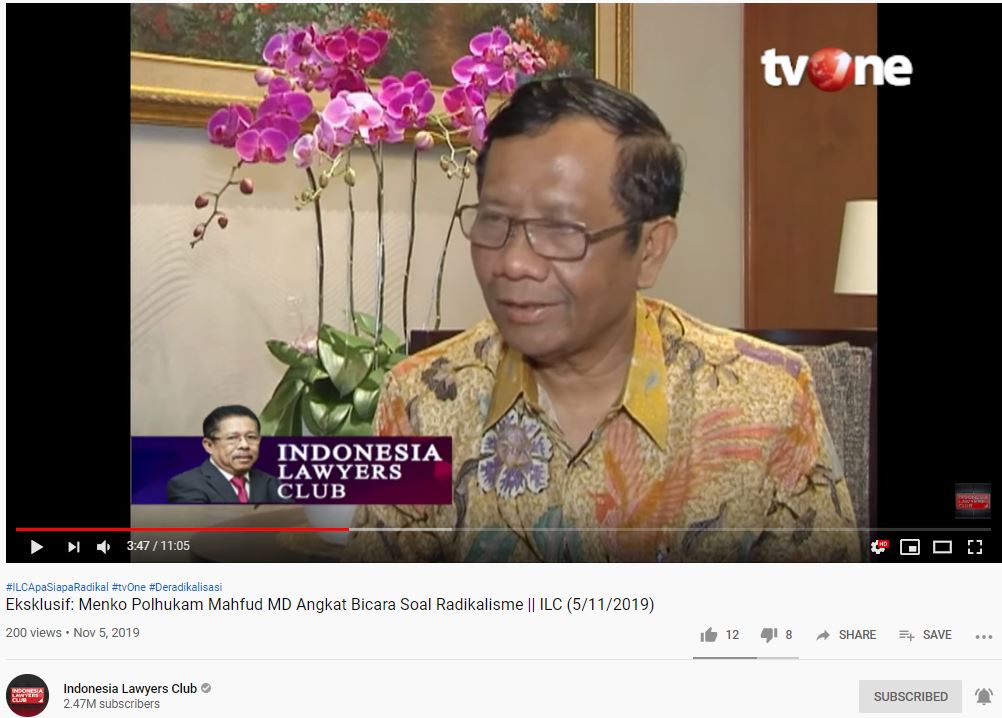 Menkopolhukam Mahfud MD mengungkapkan usahanya untuk memberikan penjelasan soal radikalisme secara jelas di ILC.