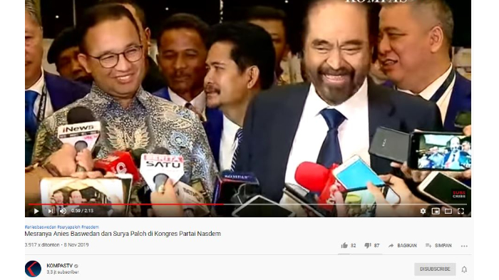 Dilansir TribunWow.com dari channel YouTube Kompas TV, Surya Paloh bahkan tak segan menyebut Anies Baswedan sebagai Adik.