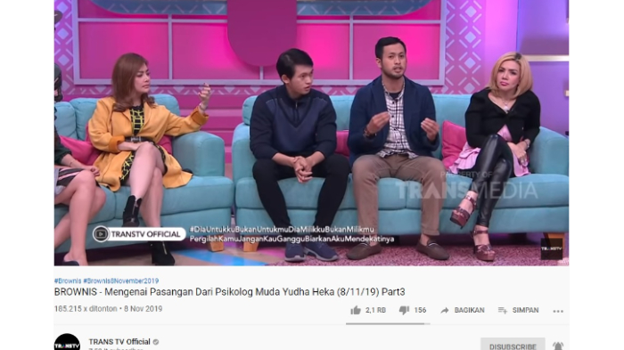 Dilansir YouTube TRANS TV Official pada Jumat (08/11/2019) lalu, Barbie dan Irfan menjadi bintang tamu acara Brownis yang dipandu presenter Ruben Onsu dan Ivan Gunawan.
