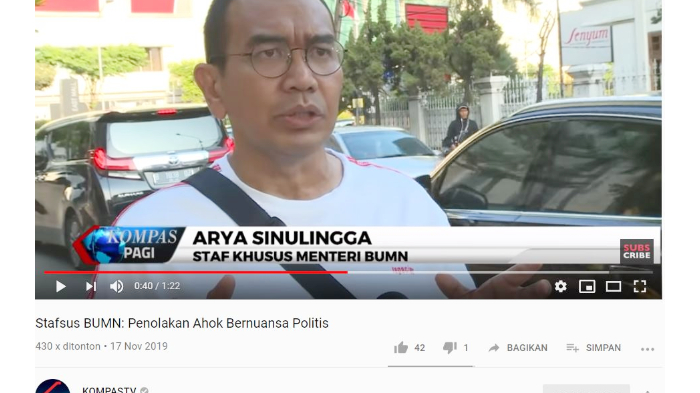 Padahal menurut Arya Sinulingga, Ahok merupakan seseorang yang memiliki kredibilitas yang baik seperti dikutip TribunWow.com dari channel YouTube Kompas TV pada Senin (18/11/2019).