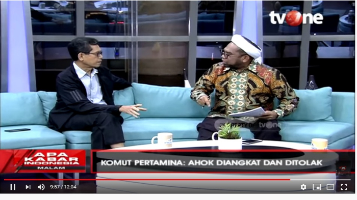 TRIBUNWOW.COM - Direktur Eksekutif Indonesian Resources Studies (IIRESS), Marwan Batubara terlibat perdebatan sengit dengan Mantan Staf Ahli Kantor Staf Kepresidenan (KSP), Ali Mochtar Ngabalin.