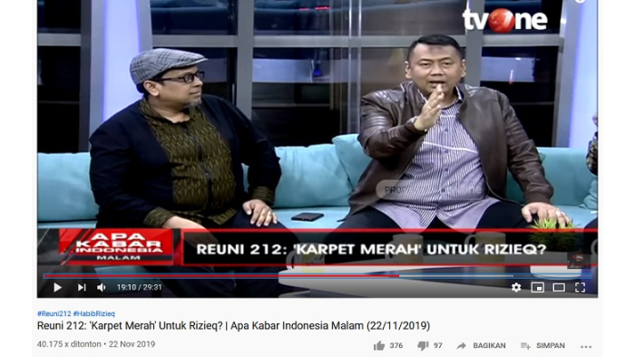 Hal itu disampaikan Kapitra Ampera saat menjadi narasumber dalam program Apa Kabar Indonesia Malam, yang diunggah kanal YouTube Talks Show tvOne, pada Sabtu (23/11/2019).