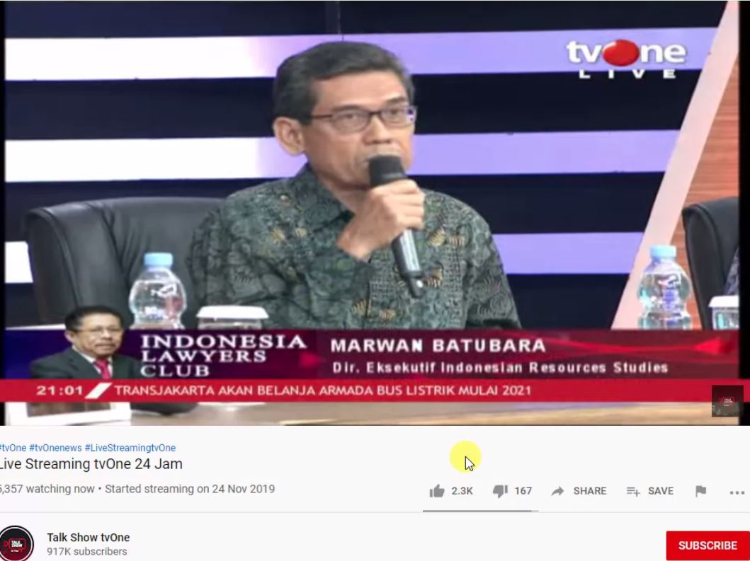 Dikutip TribunWow.com dari tayangan langsung Indonesia Lawyers Club, Selasa (26/11/2019), Marwan Batubara mengatakan bahwa Ahok tidak layak untuk dijadikan Komut Pertamina.