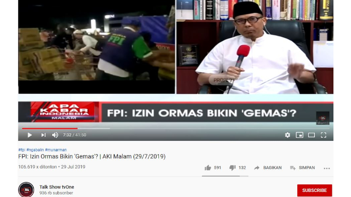 Hal itu disampaikan Munarman melalui sambungan telewicara dalam acara Apa Kabar Indonesia Malam pada Selasa (3/12/2019).