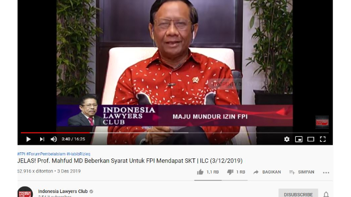 Menteri Politik, Hukum dan Keamanan, Mahfud MD memberikan penjelasan mengapa Surat Keterangan Terdaftar (SKT) Front Pembela Islam (FPI) yang hingga kini belum terbit.