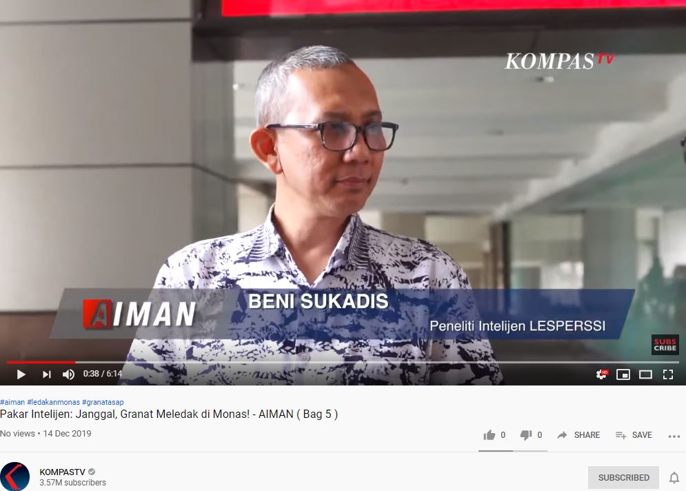 TRIBUNWOW.COM - Peneliti Intelijen LESPERSSI Beni Sukadis menjabarkan analisanya terkait insiden ledakan granat asap di Monas.