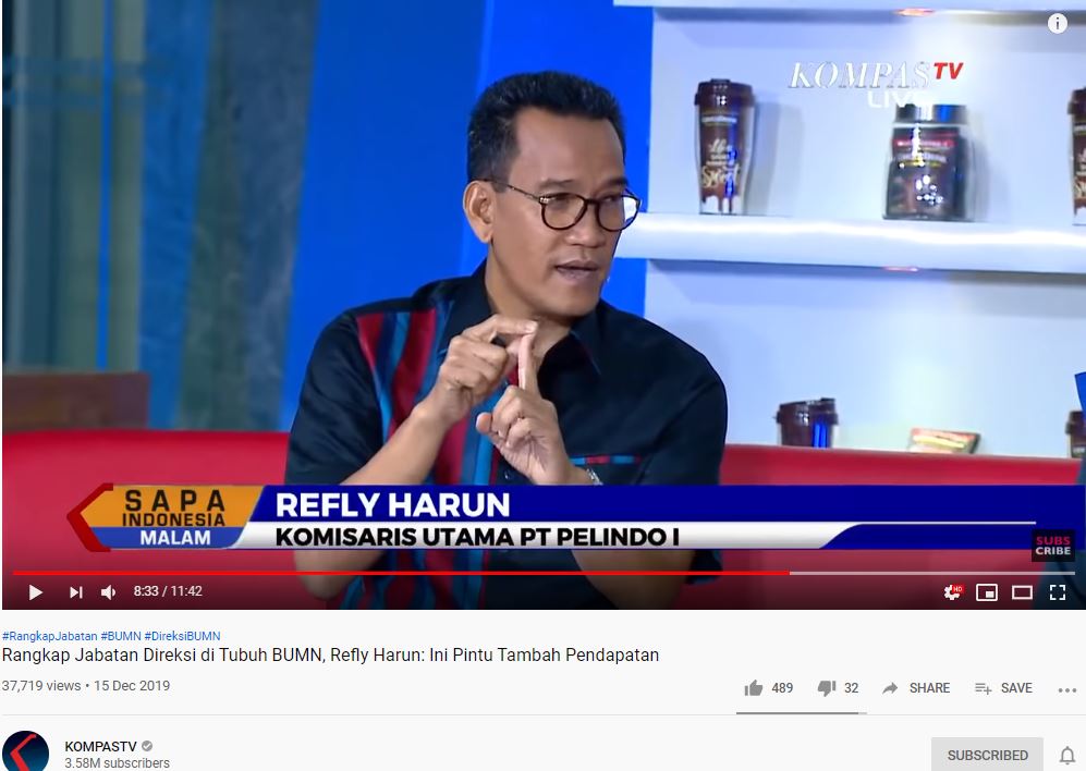 Dikutip TribunWow.com dari video unggahan kanal Youtube Kompastv, Minggu (15/12/2019), mulanya Refly menjelaskan rangkap jabatan wajar dilakukan karena anak perusahaan pada umunya investasinya bersumber dari induk perusahaan itu sendiri.