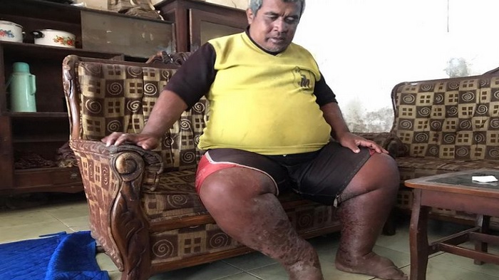 Hingga akhirnya keluarga heran dengan kondisi kaki Saepudin yang menjadi bengkak, kering, kemudian timbul luka kecil-kecil seperti kena knalpot panas yang berujung dengan luka parah disertai nanah.