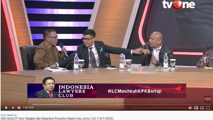 Perdebatan tersebut melibatkan Pegiat Antikorupsi, Saor Siagian dengan Anggota DPR Fraksi PDIP, Masinton Pasaribu.