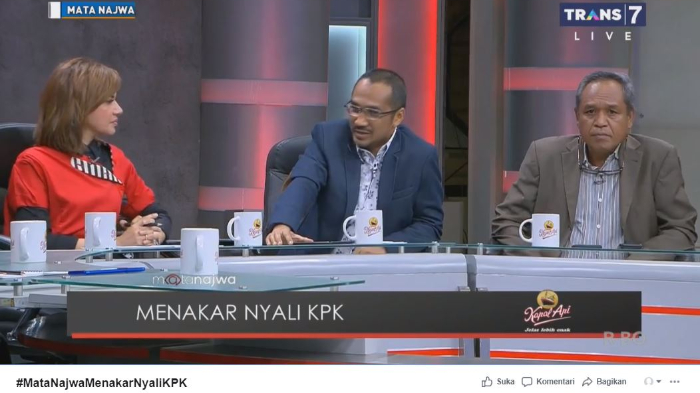 "Sebagian terjadi ketika Anda menjabat Ketua KPK Bang Abraham Samad, apa yang Anda bandingkan dengan apa yang terjadi sekarang?," tanya Presenter Najwa Shihab.