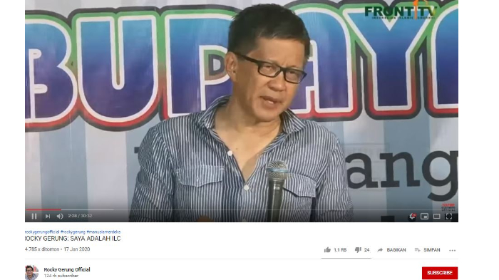 Hal itu diketahui melalui channel YouTube Rocky Gerung Official pada Sabtu (18/1/2020).