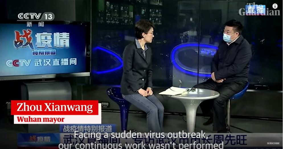 Dikutip TribunWow.com dari kanal YouTube Guardian News, Senin (27/1/2020), Zhou menyampaikan permohonan maafnya di sebuah kanal televisi milik negara, yakni CCTV.