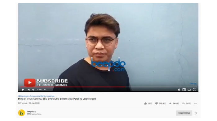 "Kalau setahu Bang Billy, nonton berita, baca terus bawain acara soal Virus Corona, memang virus yang sangat mematikan," jelasnya, dikutip TribunWow.com dari kanal YouTube Beepdo, Kamis (30/1/2020).