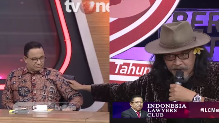 Budayawan Sujiwo Tejo (kiri) dan Gubernur DKI Jakarta Anies Baswedan (kanan), ILC Selasa (11/2/2020)