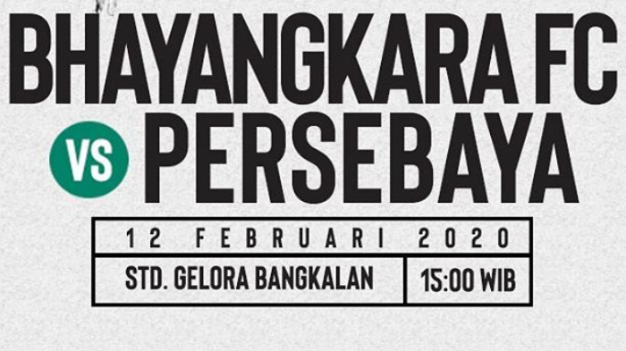 Pertandingan Bhayangkara FC vs Persebaya Surabaya akan digelar di Stadion Gelora Bangkalan, Madura, Jawa Timur, pukul 15.30 WIB.