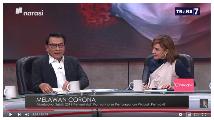 Kepala Kantor Staf Presiden (KSP), Moeldoko buka suara soal Virus Corona saat menjadi bintang tamu dalam acara Mata Najwa, Rabu (4/3/2020).