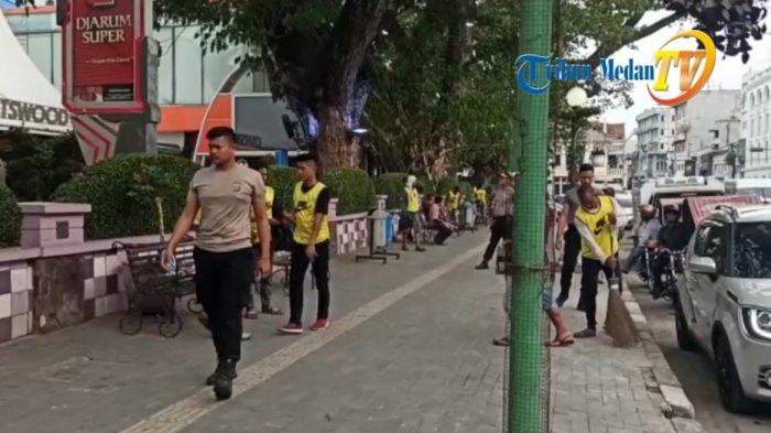 Terjaring Razia karena Peras Warga dengan Dalih Parkir, Puluhan Preman di Medan Dihukum Sapu Jalanan