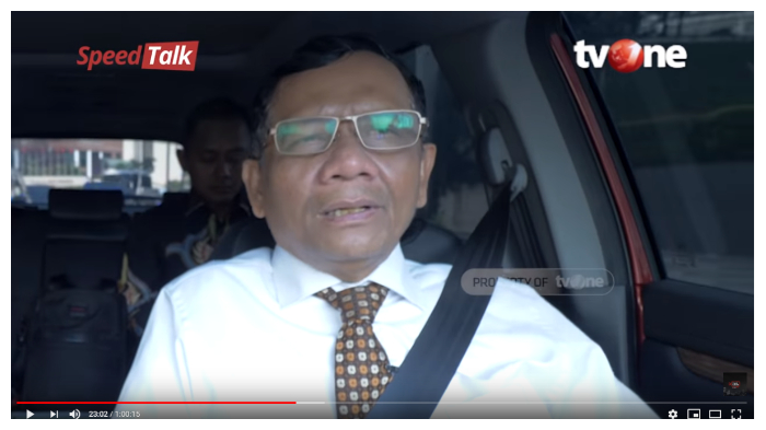 Melalui tayangan 'SpeedTalk' yang diunggah kanal YouTube Talk Show tvOne, Jumat (20/3/2020), Mahfud MD mengungkap kesibukannya sebagai Menko Polhukam.