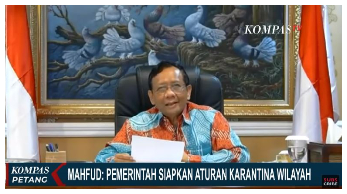 Menko Polhukam, Mahfud MD memberikan gambaran mengenai karantina wilayah untuk pencegah penyebaran Virus Corona. Disebut masih dalam perancangan.