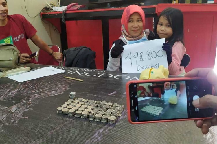 Jumlah uang celengan Yasmin yang disumbangkan adalah Rp 448.800. (Kompas.com/Himawan)