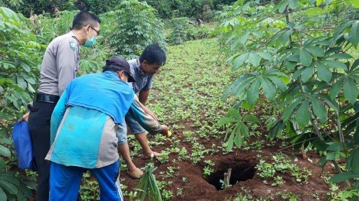 Peristiwa ini pun membuat seorang petani terperosok dalam lubang sedalam tiga meter tersebut.