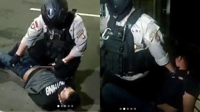 Terlihat dalam unggahan video pertama, aparat kepolisian tengah memborgol salah satu pelaku yang tengkurap di tanah.