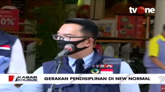 Dalam konferensi pers yang ditayangkan TvOne itu, Ridwan Kamil hendak menjelaskan pembagian status tiap wilayah yang dapat mulai beradaptasi ke new normal.