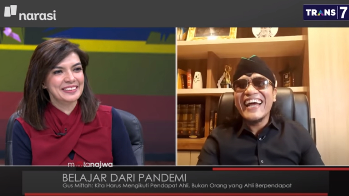 TRIBUNWOW.COM - Presenter Najwa Shihab dibuat terkekeh oleh Gus Miftah di acara Mata Najwa yang tayang pada Rabu (3/6/2020).