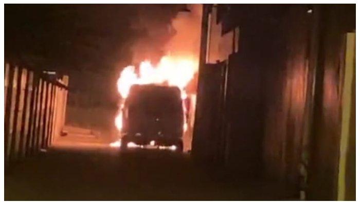 Mobil pedangdut Via Vallen saat terbakar di depan rumahnya, pada Selasa (30/6/2020) dini hari.