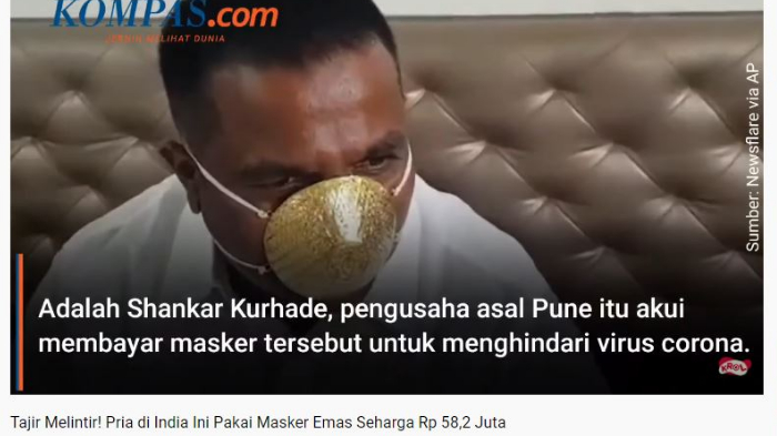 Artikel ini telah tayang di Kompas.com dengan judul [VIDEO] Tajir Melintir, Pria di India Ini Pakai Masker Emas untuk Tangkal Virus Corona