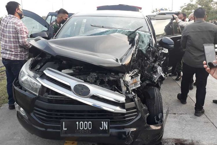 Mobil rombongan ajudan Kapolda Jawa Timur terlibat kecelakaan di ruas Tol Mojokerto-Kertosono, Jumat (10/7/2020) sore.