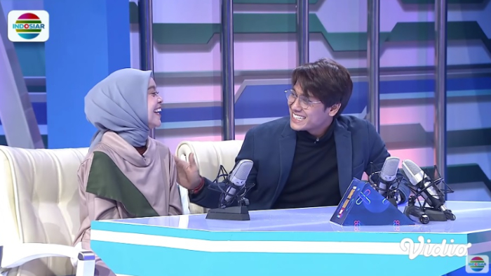 Pedangdut Lesti Kejora tampak salah tingkah saat disentuh oleh pemain sinetron Rizky Billar.