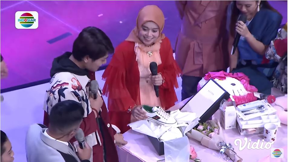Ia datang dan memberikan hadiah spesial untuk Lesti berupa sepasang sepatu sneaker bermerek Gucci.