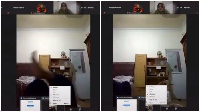 Dalam video tersebut, seorang siswi berkerudung putih tampak mengikuti kelas online dalam platform Zoom.