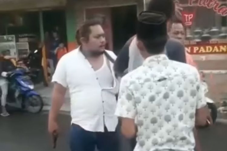 Oknum pengendara yang membawa pistol tersebut adu mulut dengan pria yang diduga seorang juru parkir di sekitar lokasi kejadian.