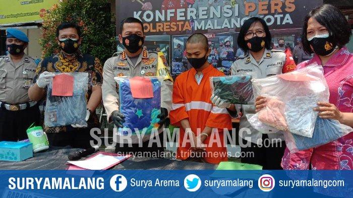 Polisi langsung menggiring tersangka ke Polresta Malang Kota.