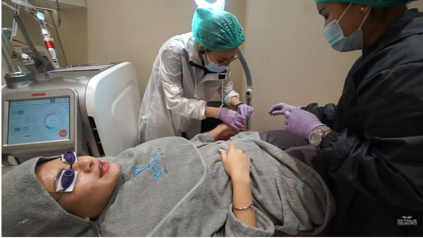Setelah sempat beberapa kali melakukan penghapusan tato, kali ini Nathalie melakukan treatment pada tangannya.
