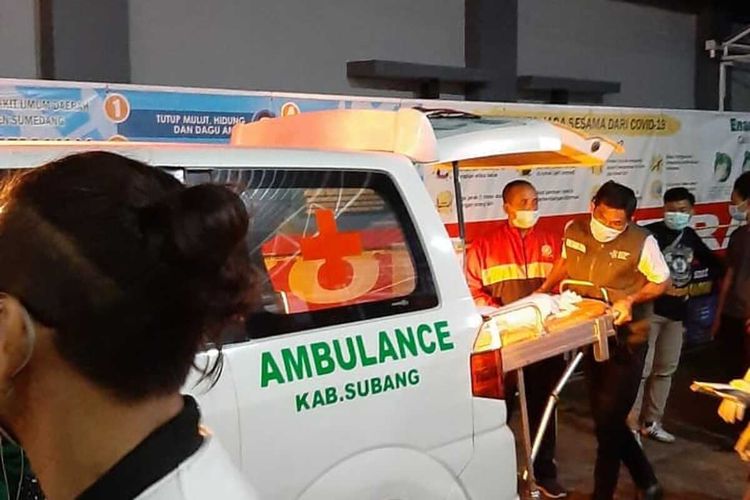 Penjemputan korban kecelakaan bus yang membawa rombongan peziarah dari SMP IT Al Muaawanah, Kamis (11/3/2021) dini hari.