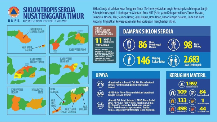 Badan Nasional Penanggulangan Bencana (BNPB) memberikan informasi terbaru terkait siklon tropis Seroja di Nusa Tenggara Timur (NTT).