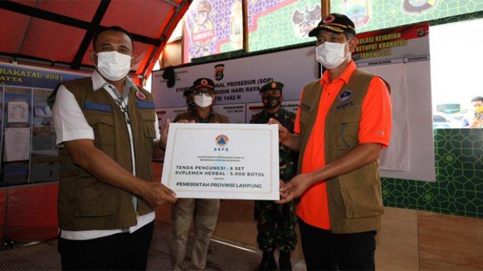 Di lokasi ini, Doni Monardo menyerahkan bantuan 6 tenda dan alat swab sebagai antisipasi membludaknya arus balik, esok hari (17/5/2021).