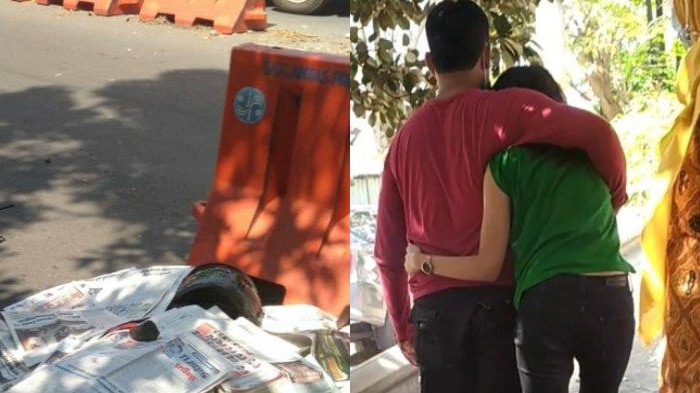 Setelah memastikan yang tewas adalah kekasihnya, Della mendadak menangis histeris.