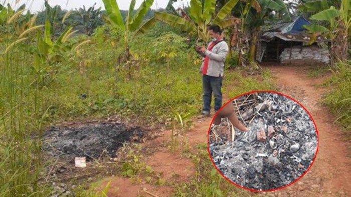 Jasad SZ ditemukan dalam kondisi masih mengeluarkan asap di sebuah kebun singkong di Cisauk, Kabupaten Tangerang, Banten, pada Jumat (9/7/2021).